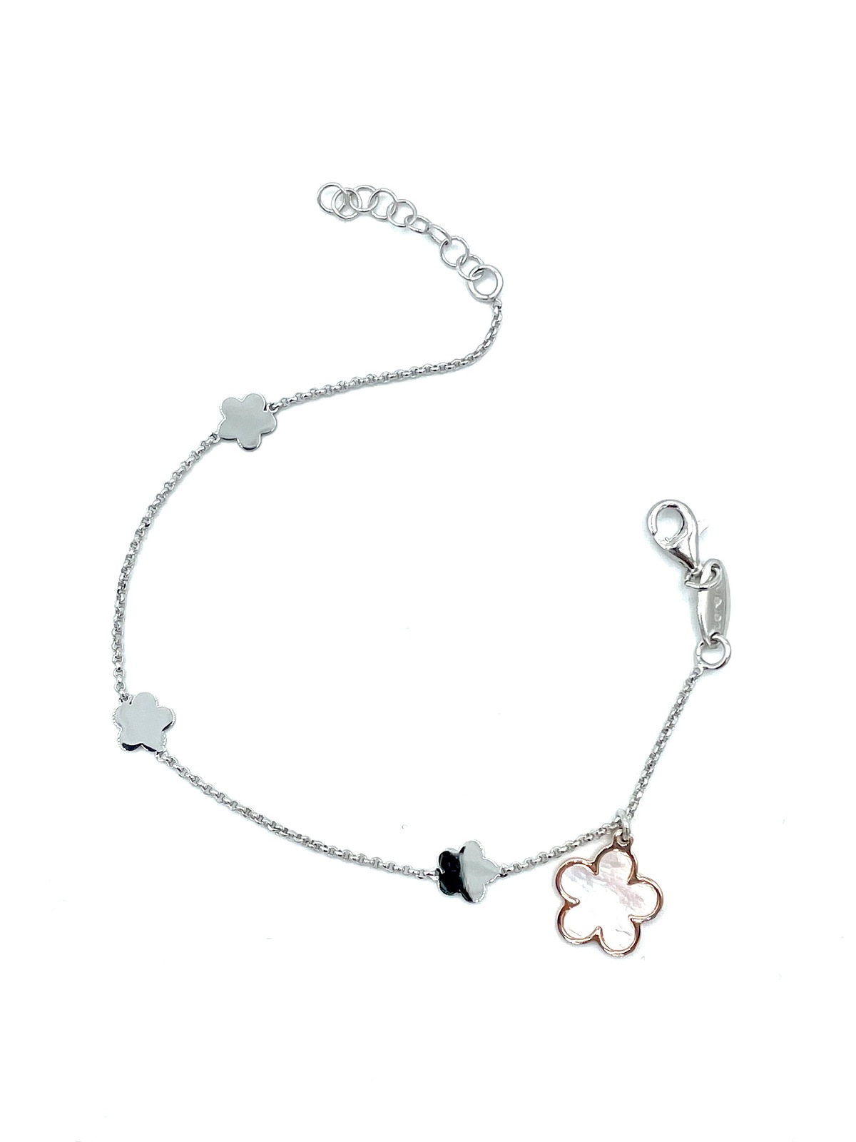 Bracelet in silver tit. 925m. with flower of mother of pearl.