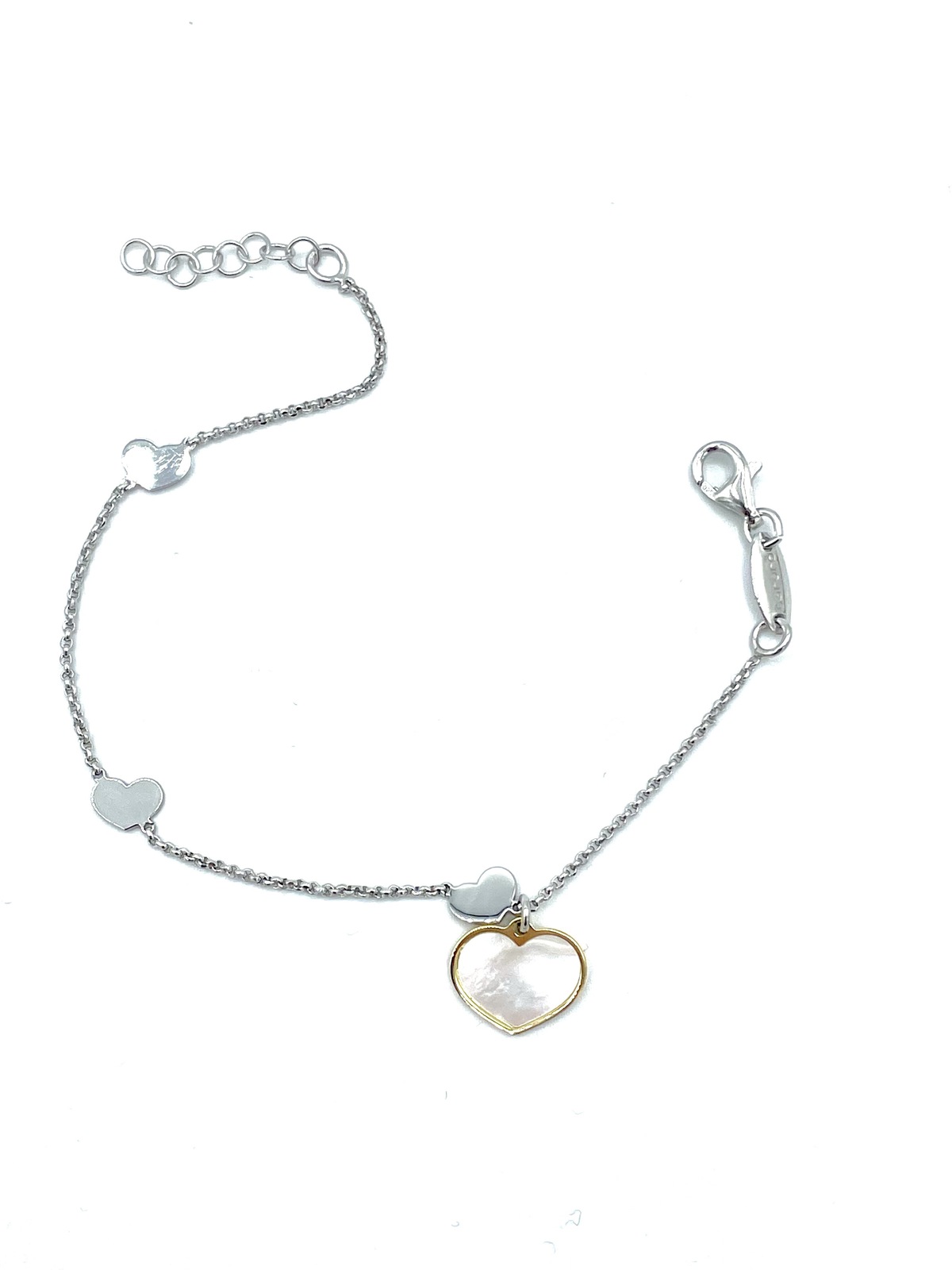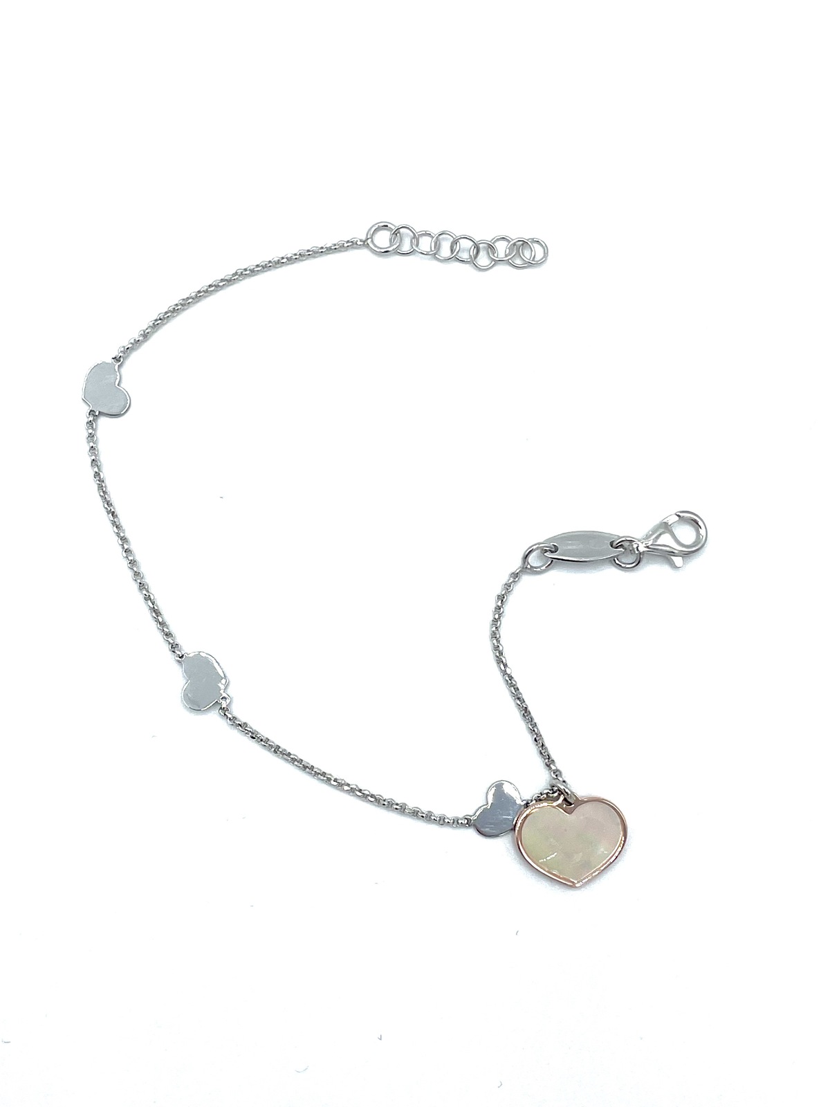 Bracelet in silver tit. 925m. with heart of mother of pearl.