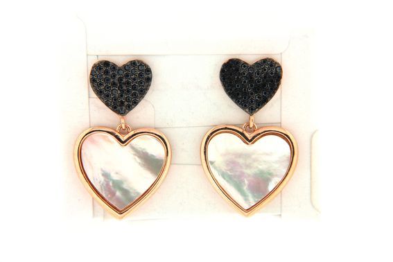Heart earrings in silver tit. 925m. with mother of pearl and black cz.