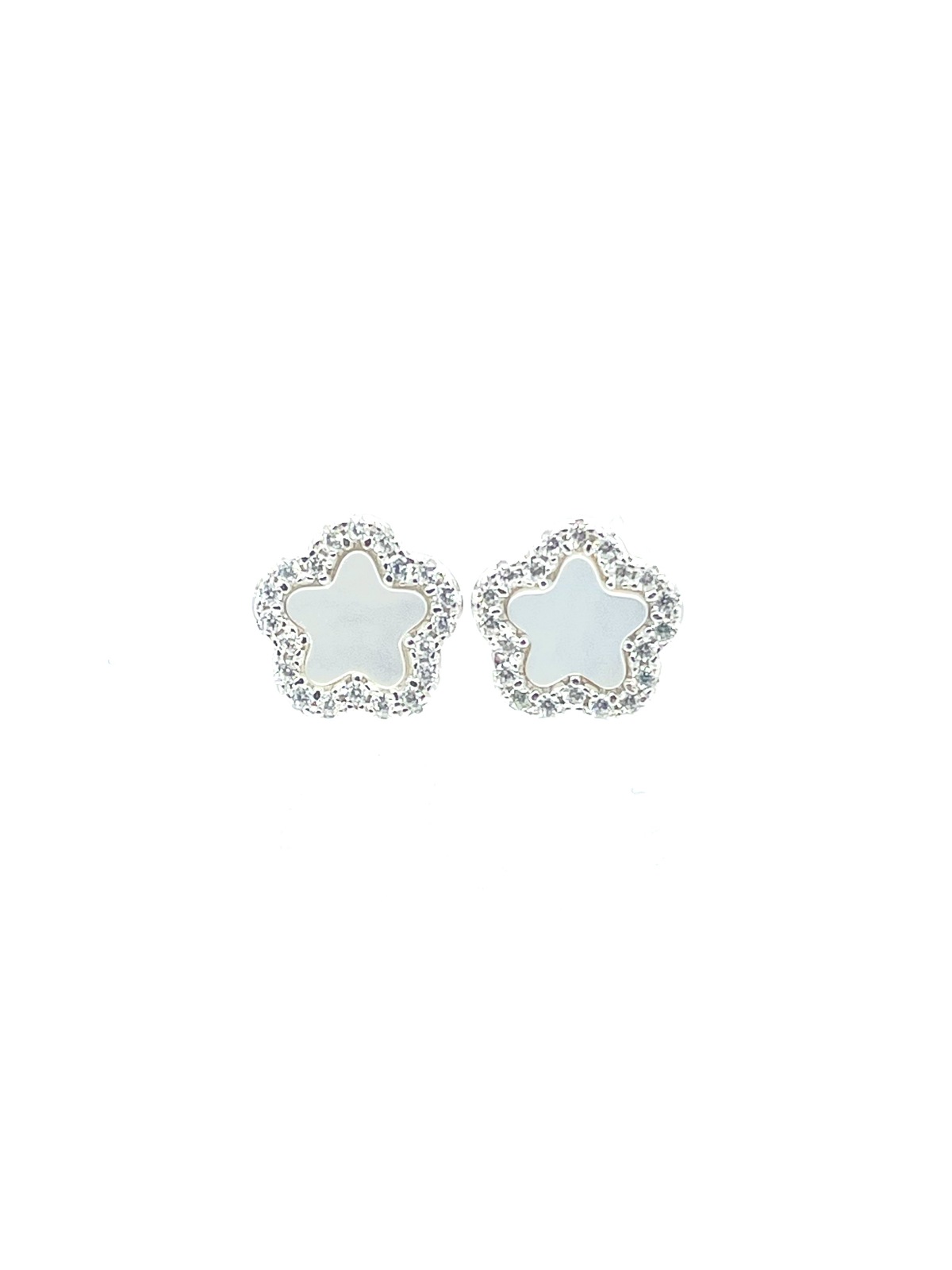 Earrings in silver tit. 925m. flower shape with mother of pearl or malachite and cz.