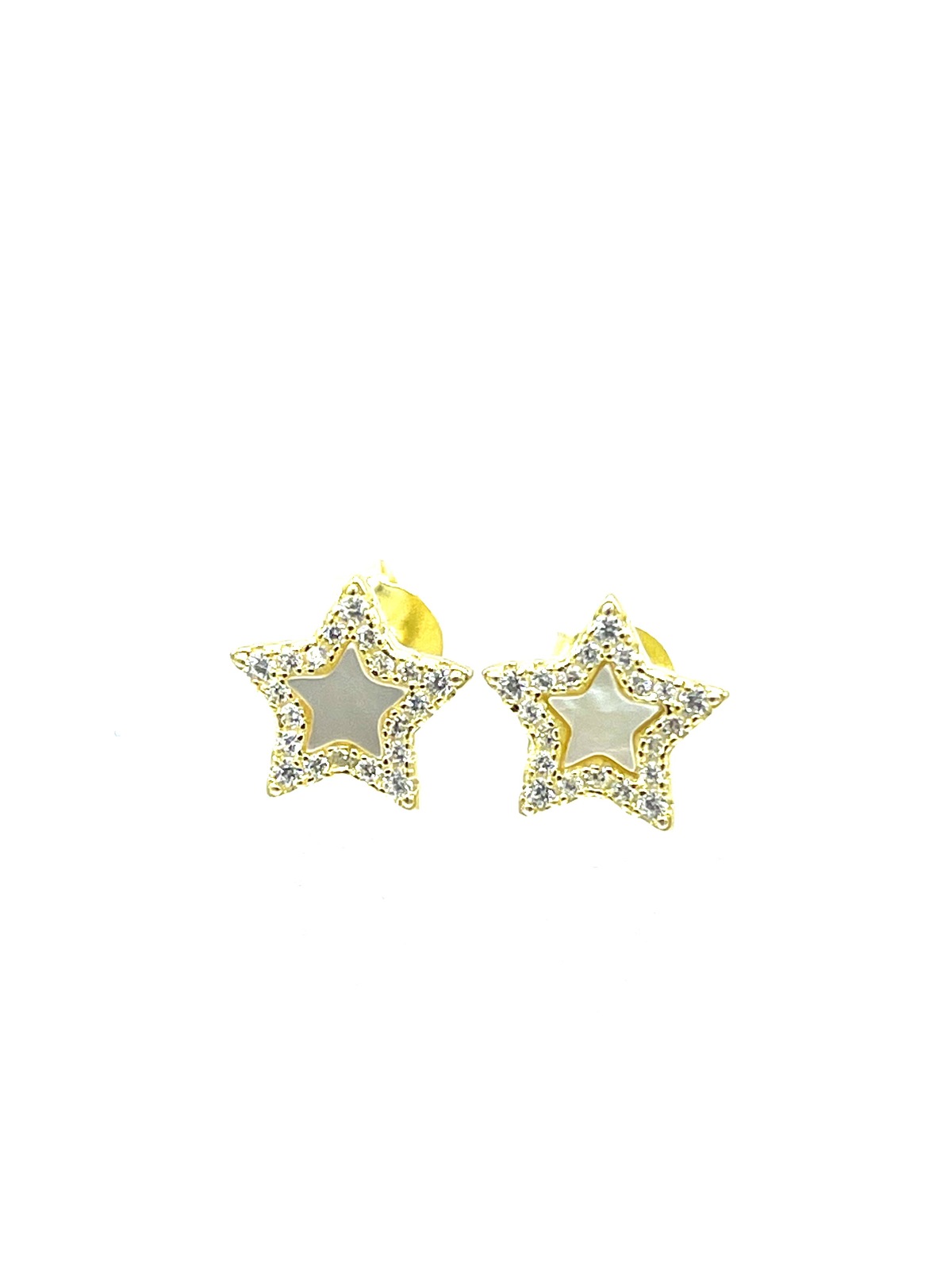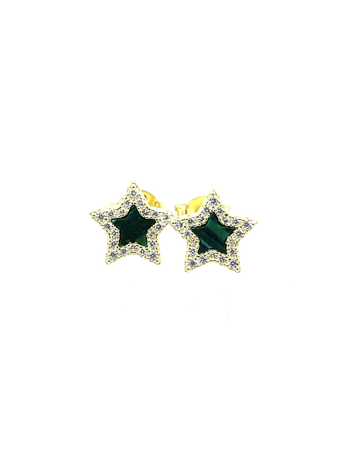 Earrings in silver tit. 925m. with malachite or mother of pearl stars and cz.