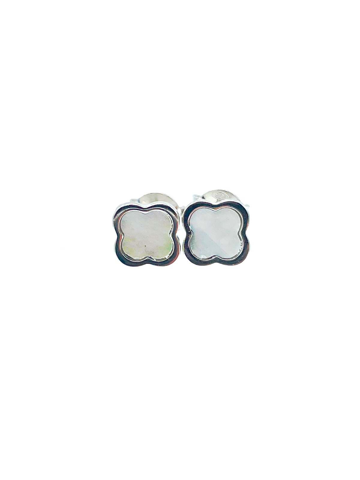 Earrings in silver tit. 925m. with mother of pearl flowers.