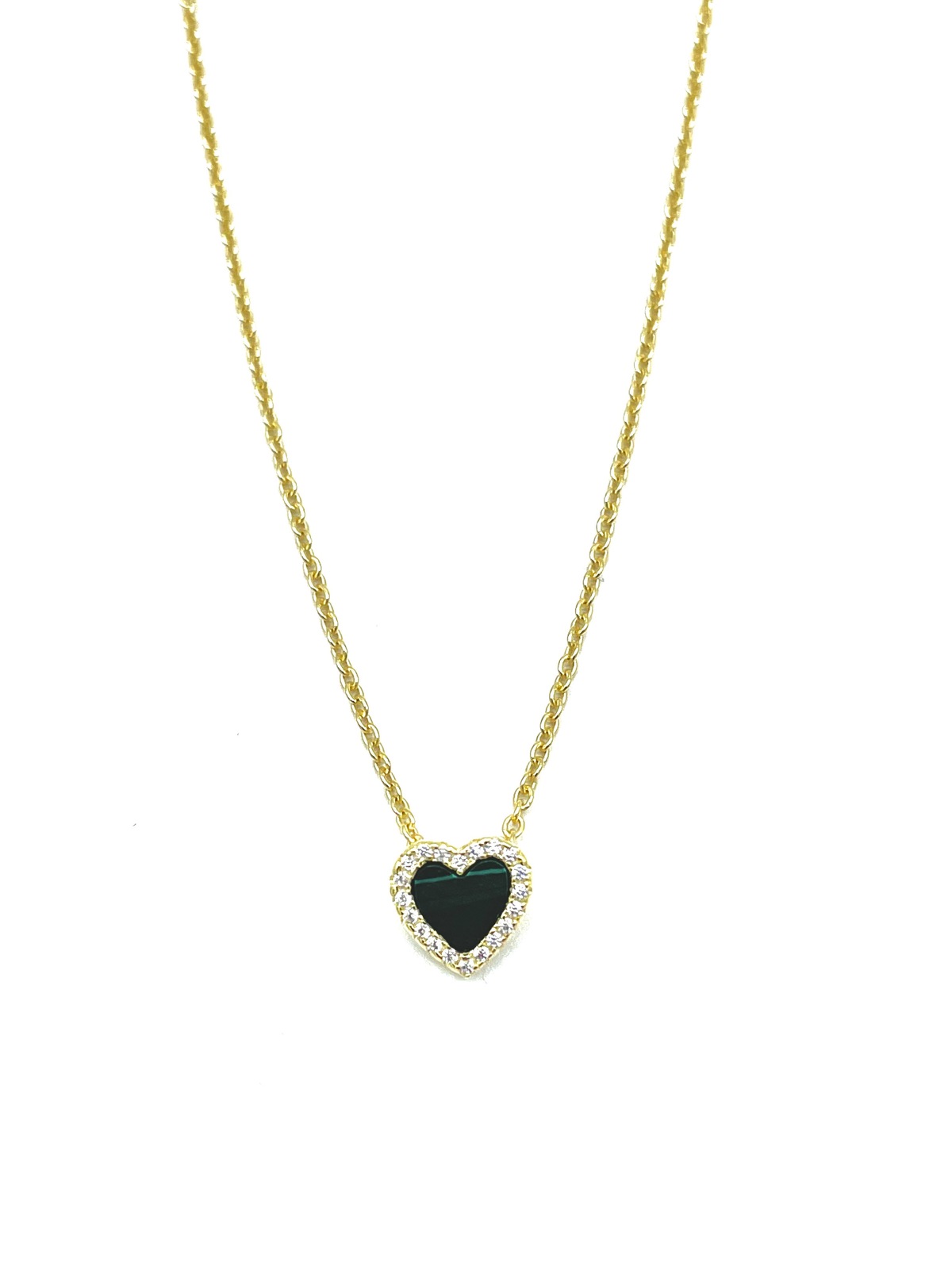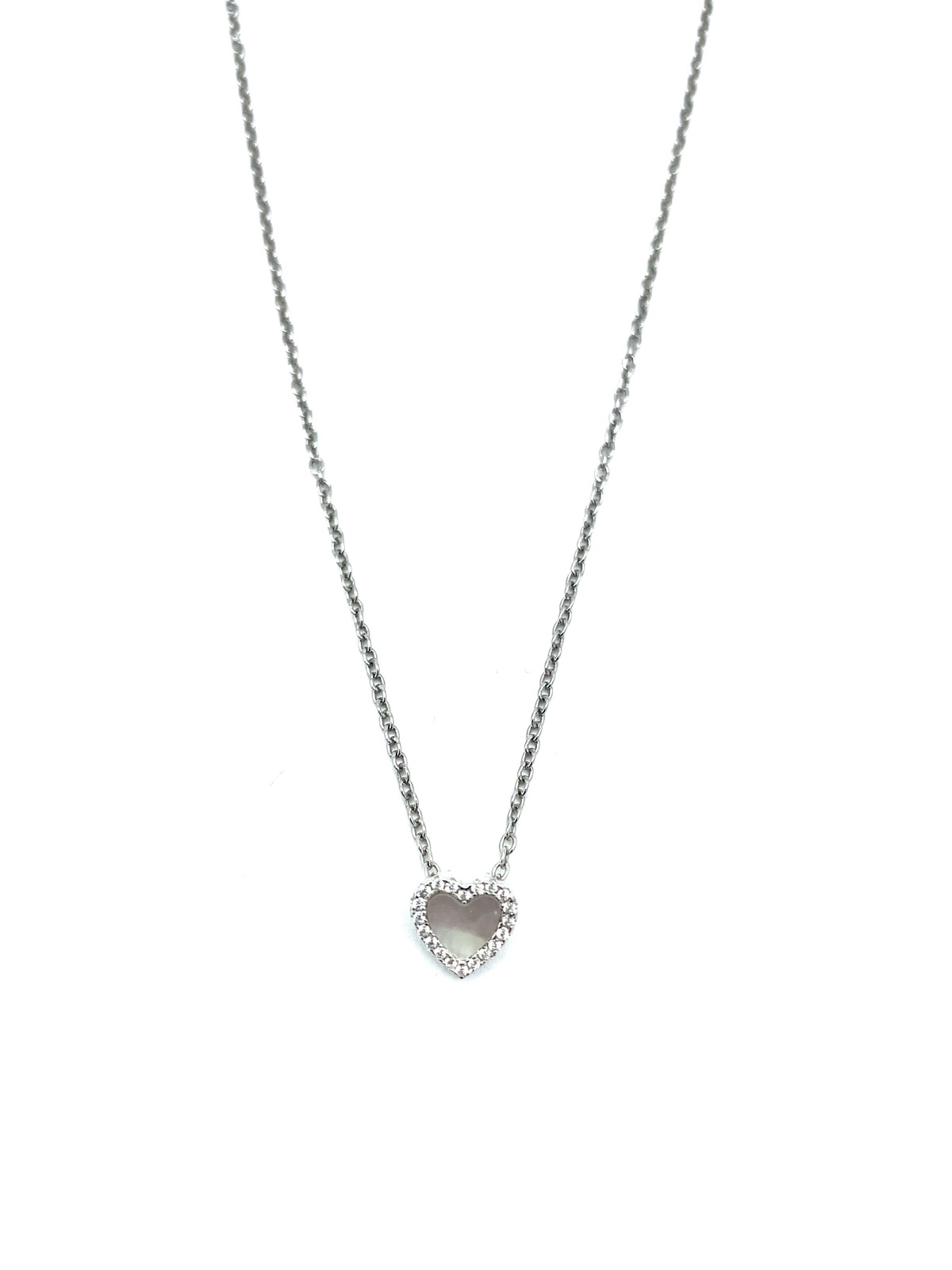 Necklace in silver tit 925m. with mother of pearl or malachite heart.