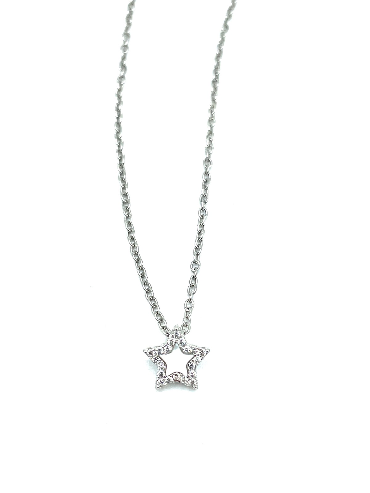 Necklace in silver tit. 925m. with mother of pearl or malachite star and cz.