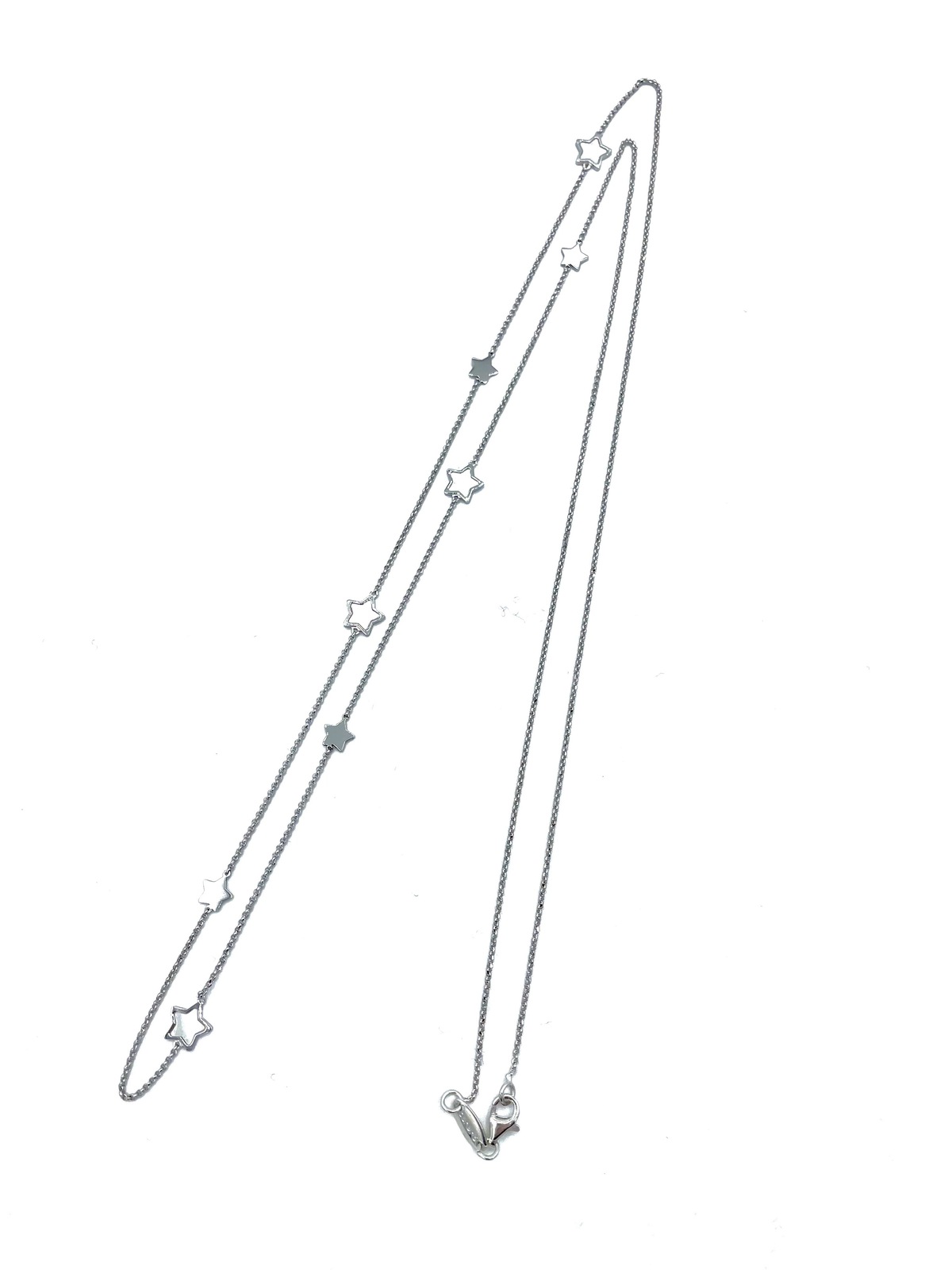 Necklace,90cm, in silver tit. 925m. with mother of pearl stars.