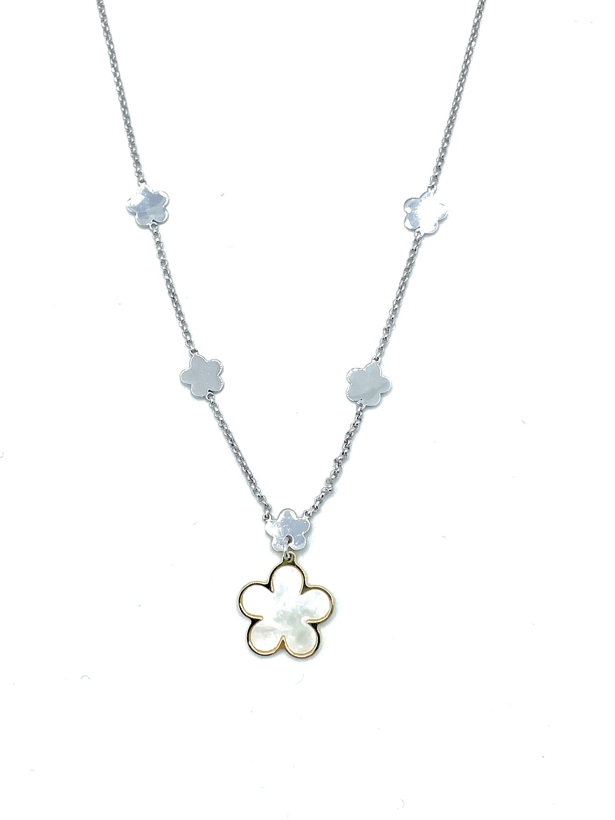 Necklace in silver tit. 925m. with mother of pearl flower.