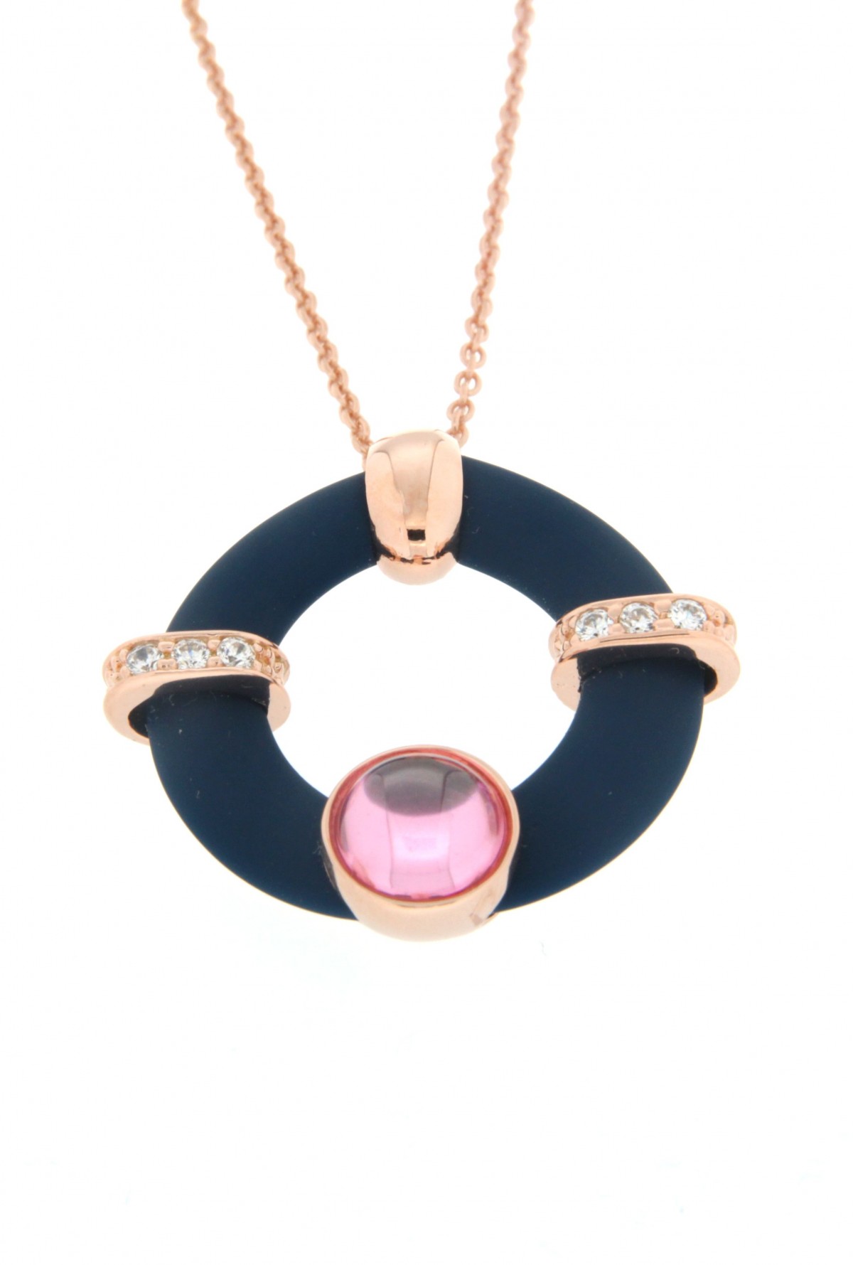 Pendent in silver tit. 925m. with rubber and colored stones and 40+5cm chain