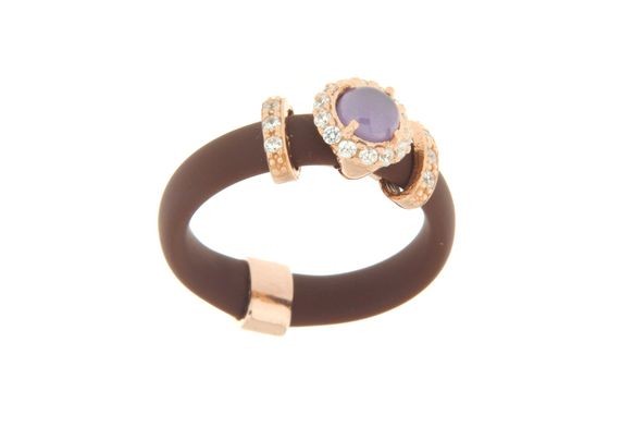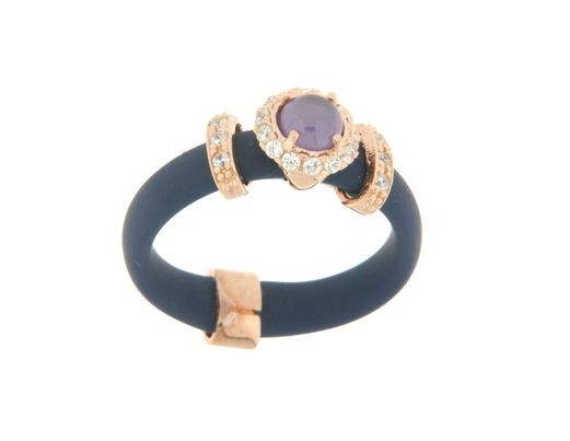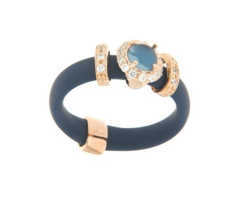 Silver ring tit. 925m. with rubber and small flowers with cubic zirconia and colored stones.