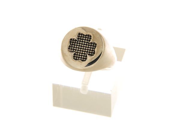 Pinkie ring with four-leaf clover in silver tit. 925m.