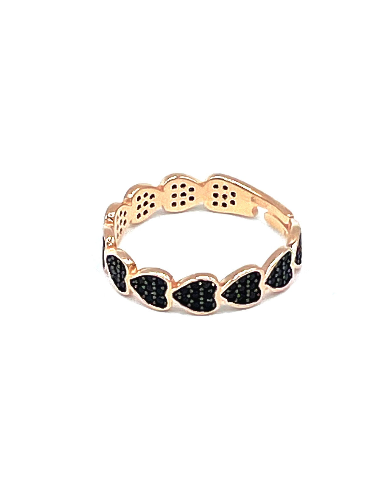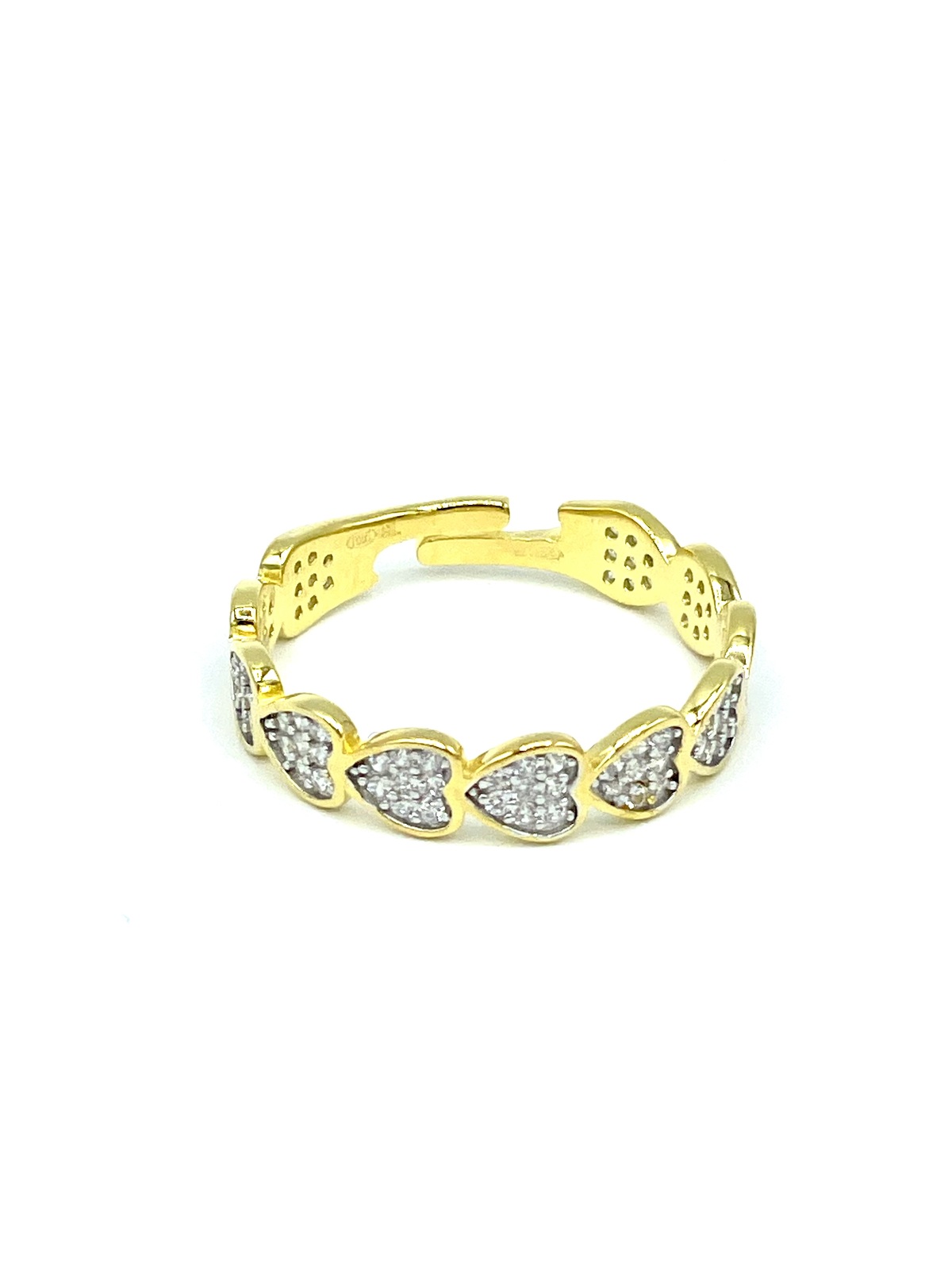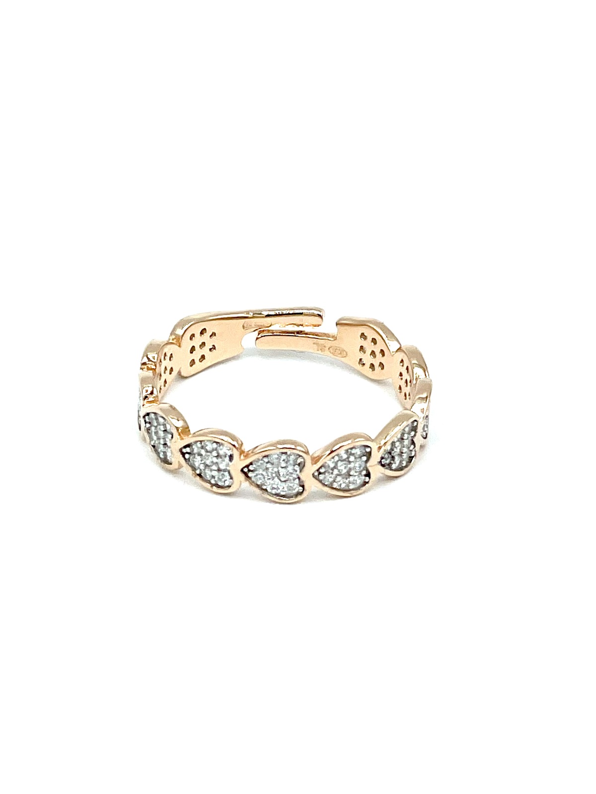 Anello in argento tit. 925m. a fascia con cuori zirconati.