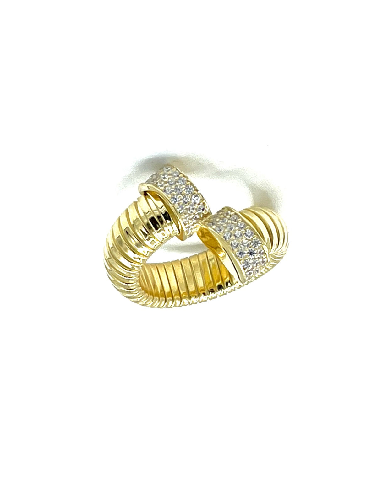 Anello tubogas contrariè in argento tit. 925m. con cz.