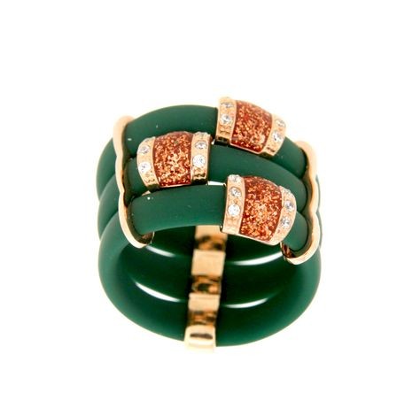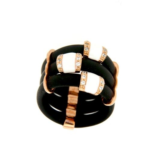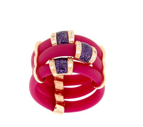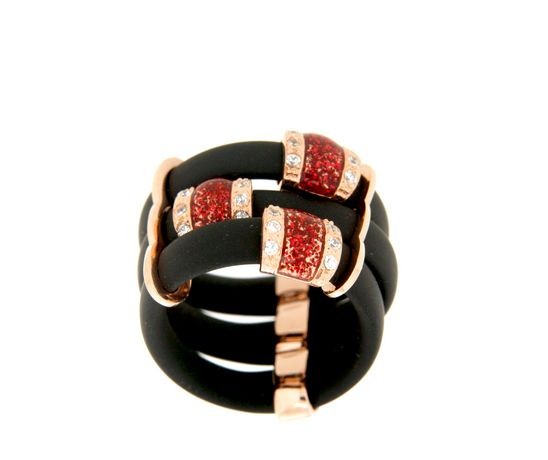 Anello in argento tit. 925m. con caucciù e smalto colorato.