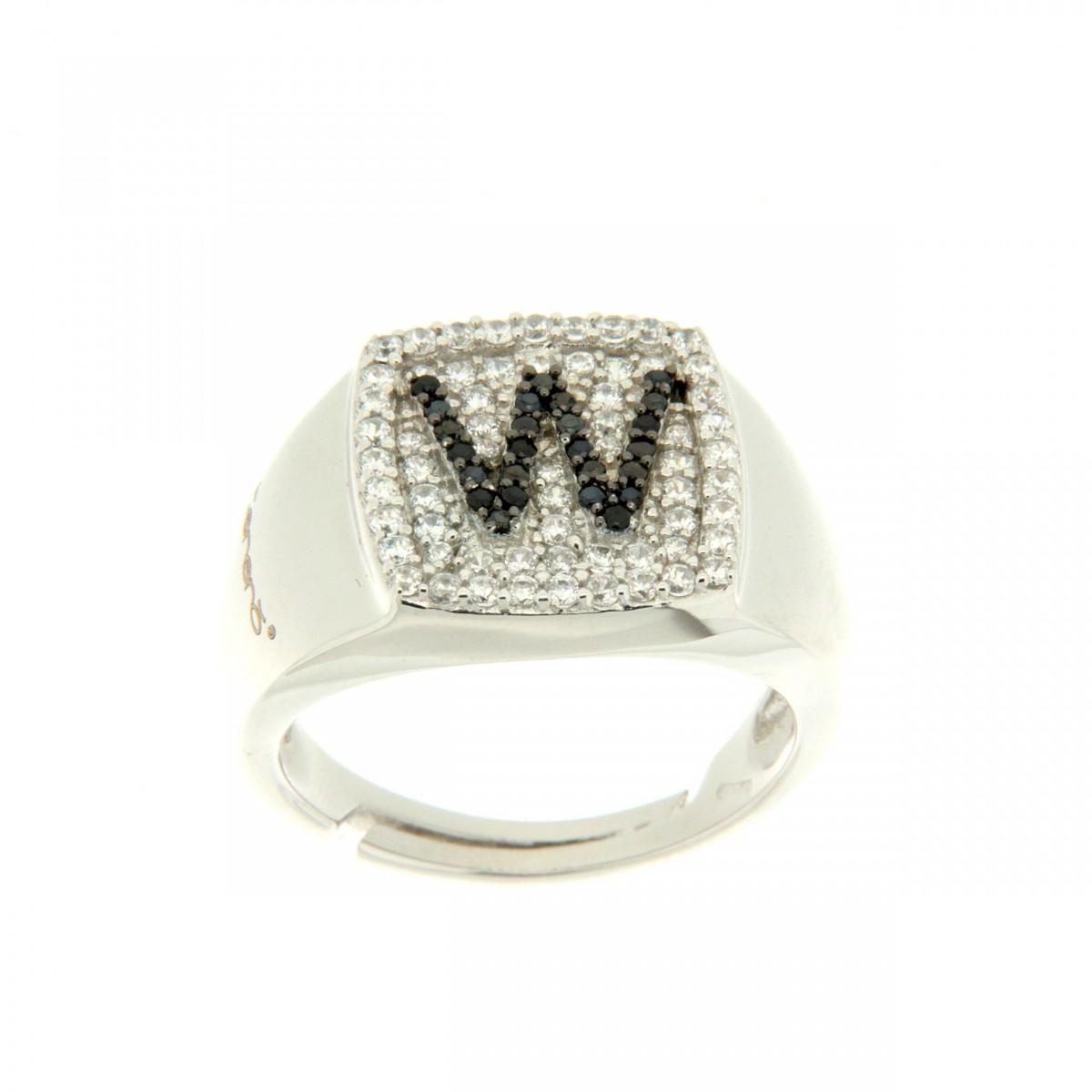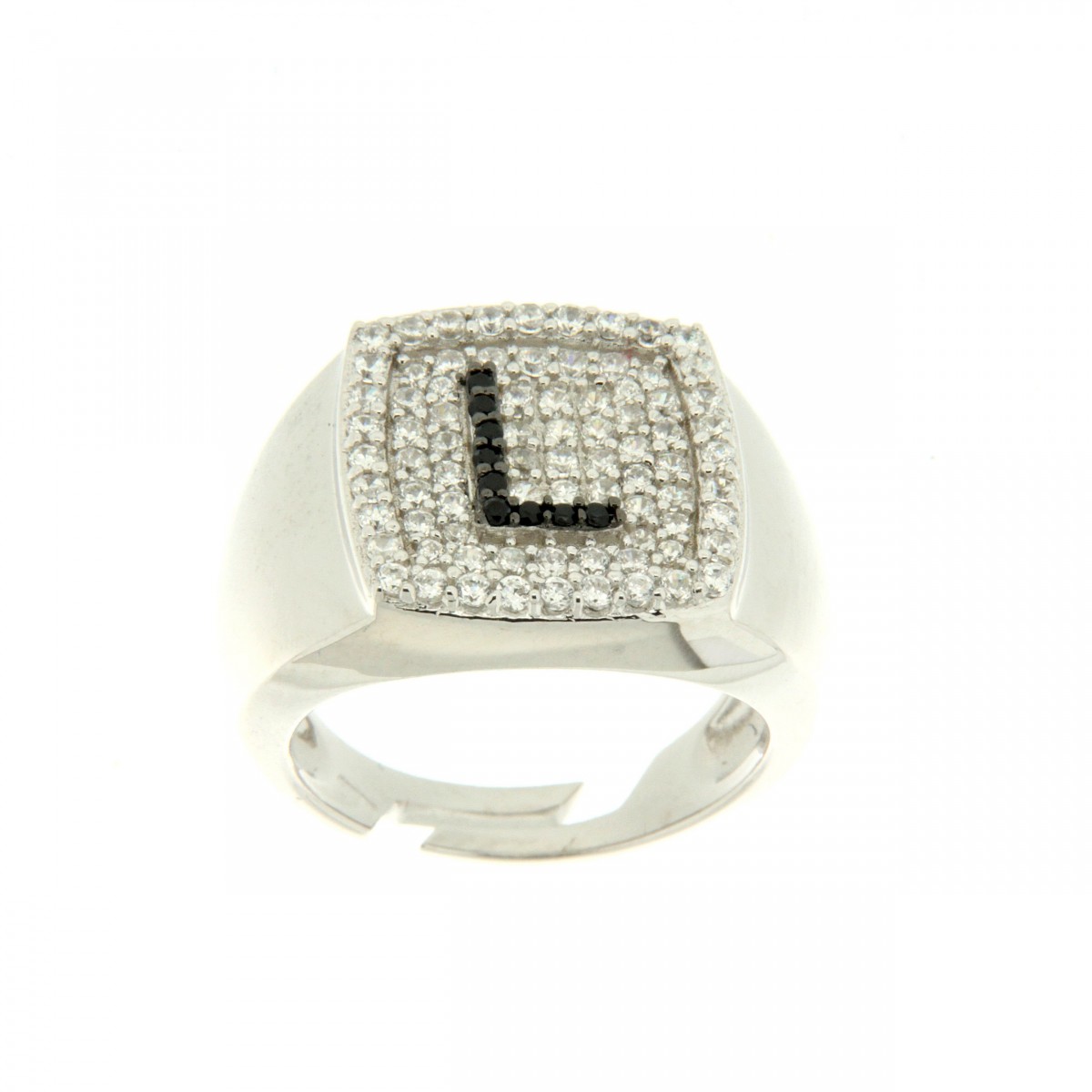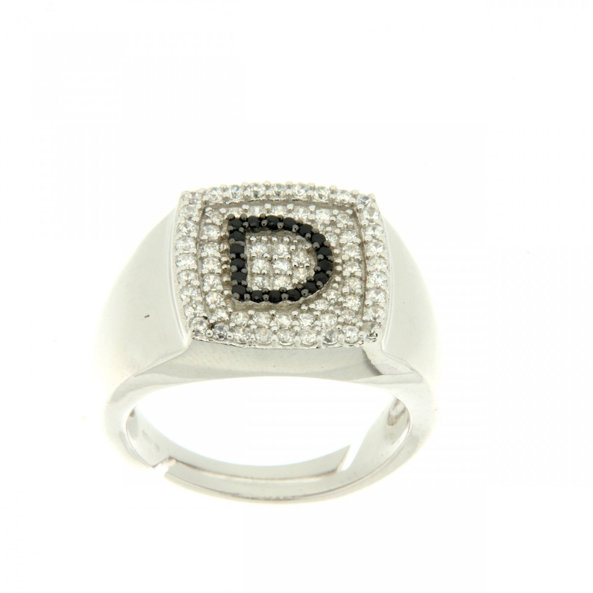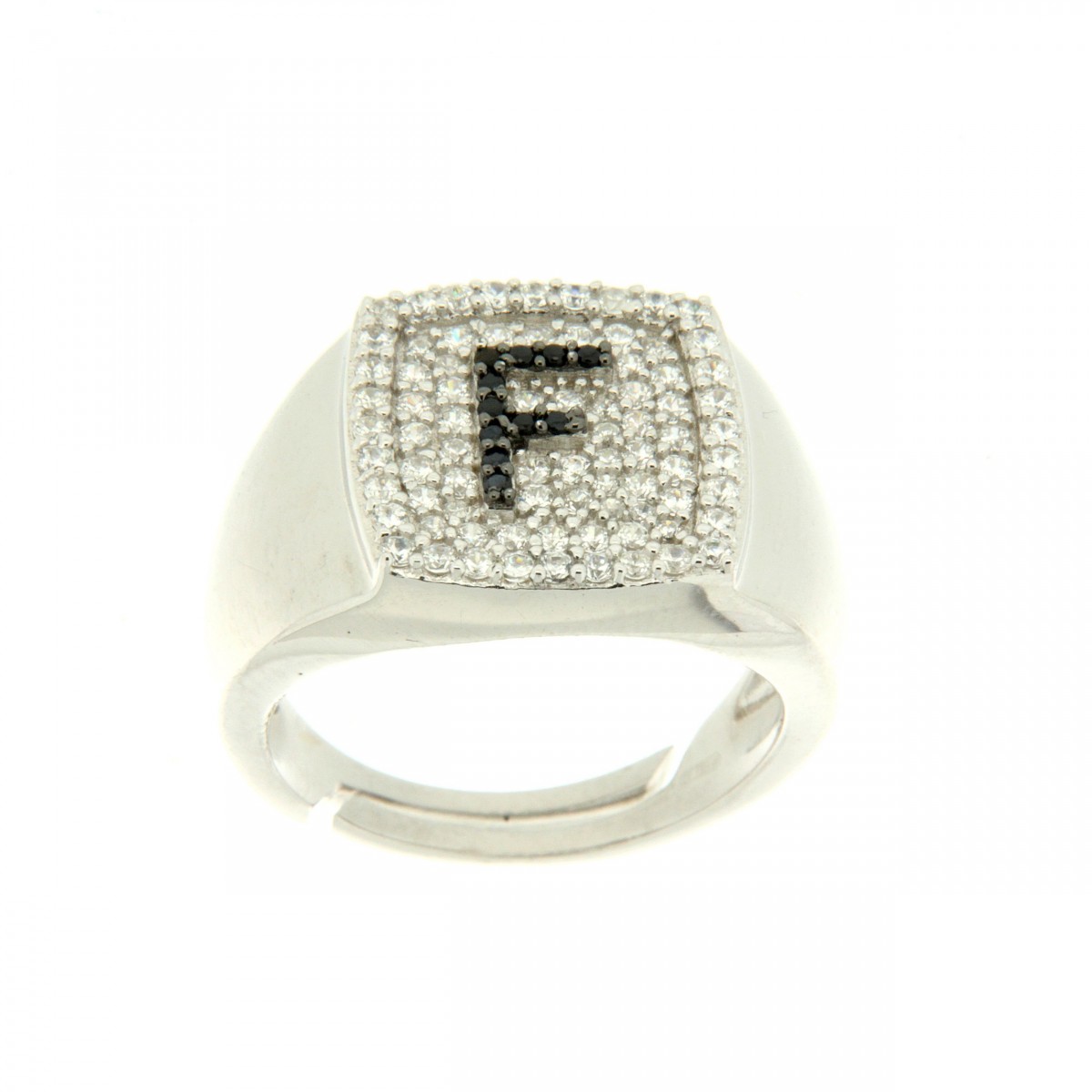 Anelli in argento tit. 925 m. con iniziali zirconate.