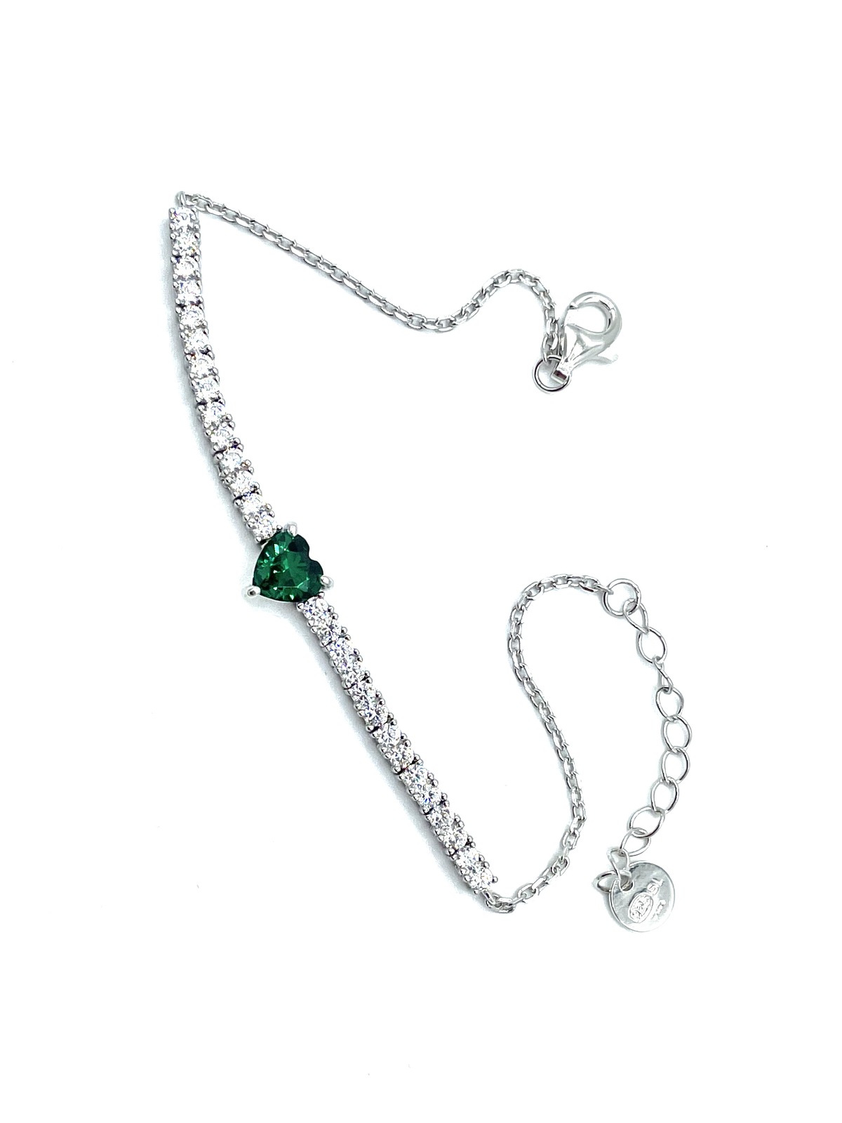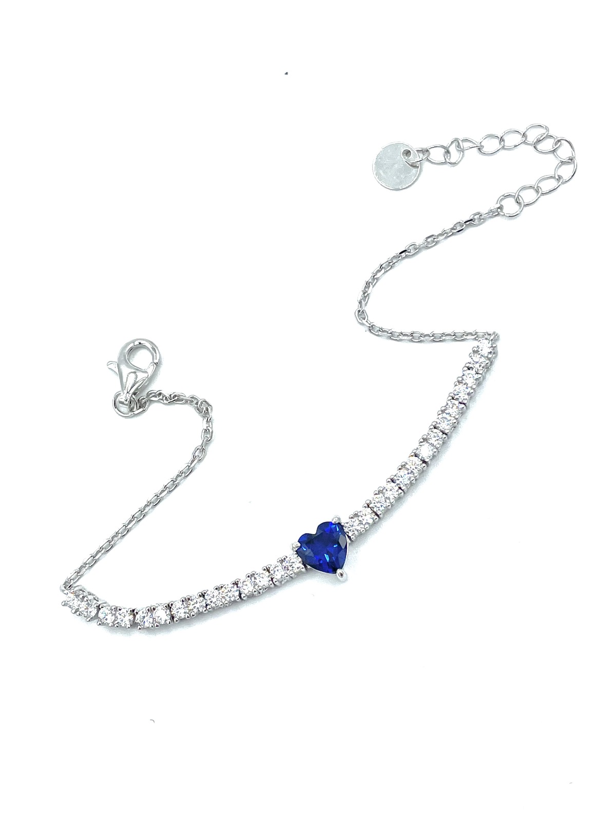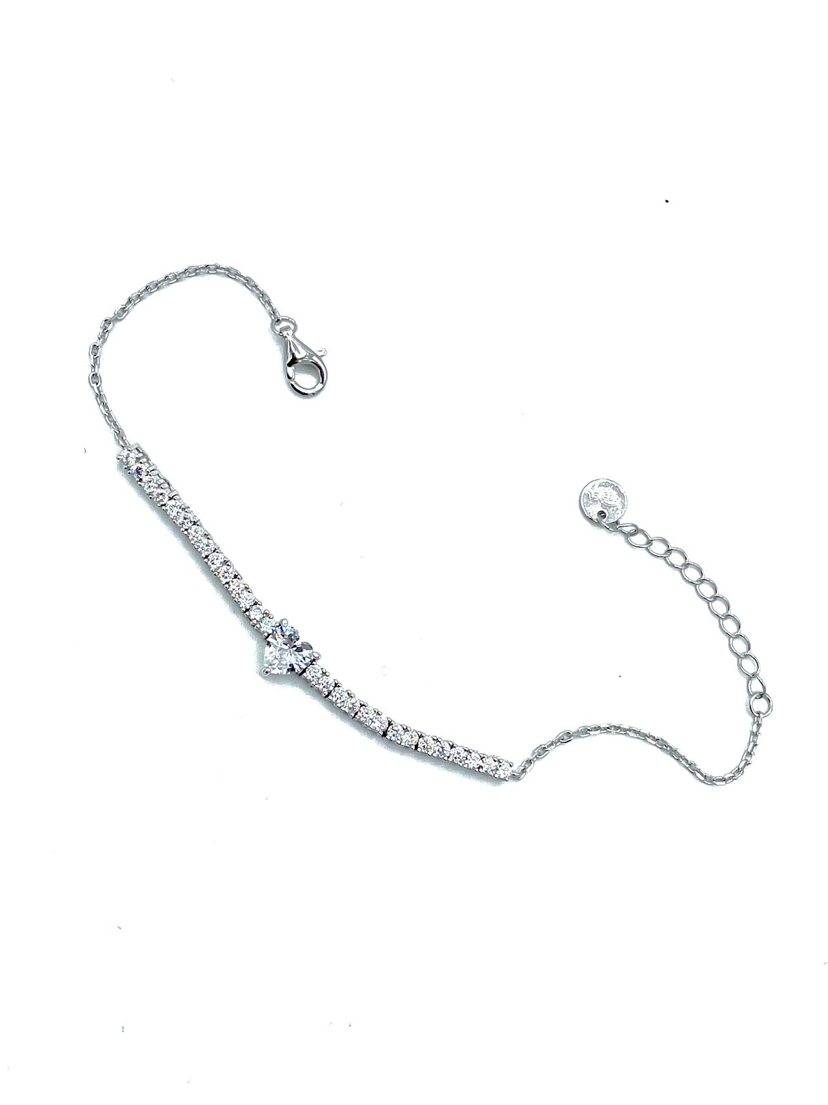 Bracciale tennis con cuore centrale in argento tit. 925m.