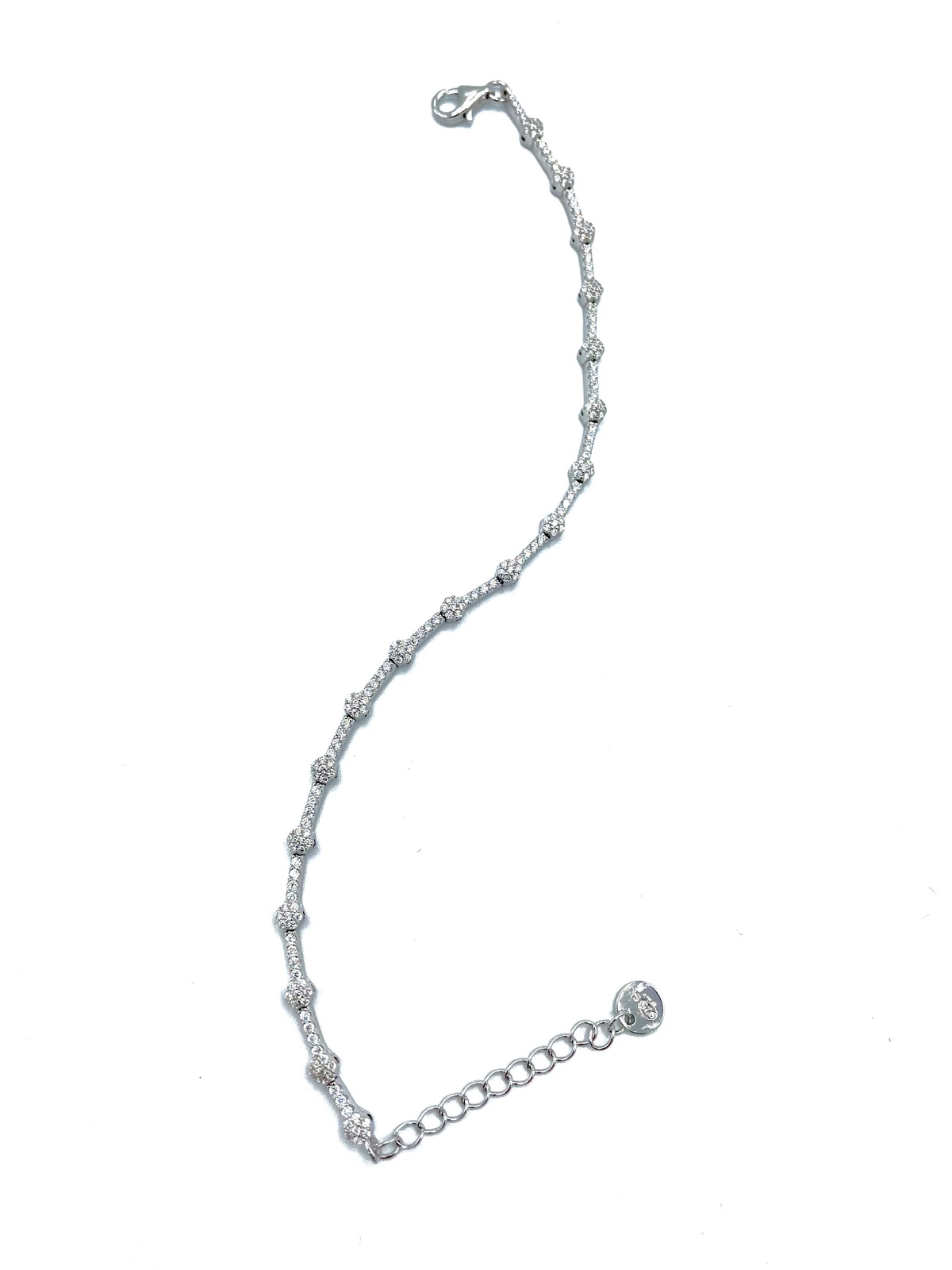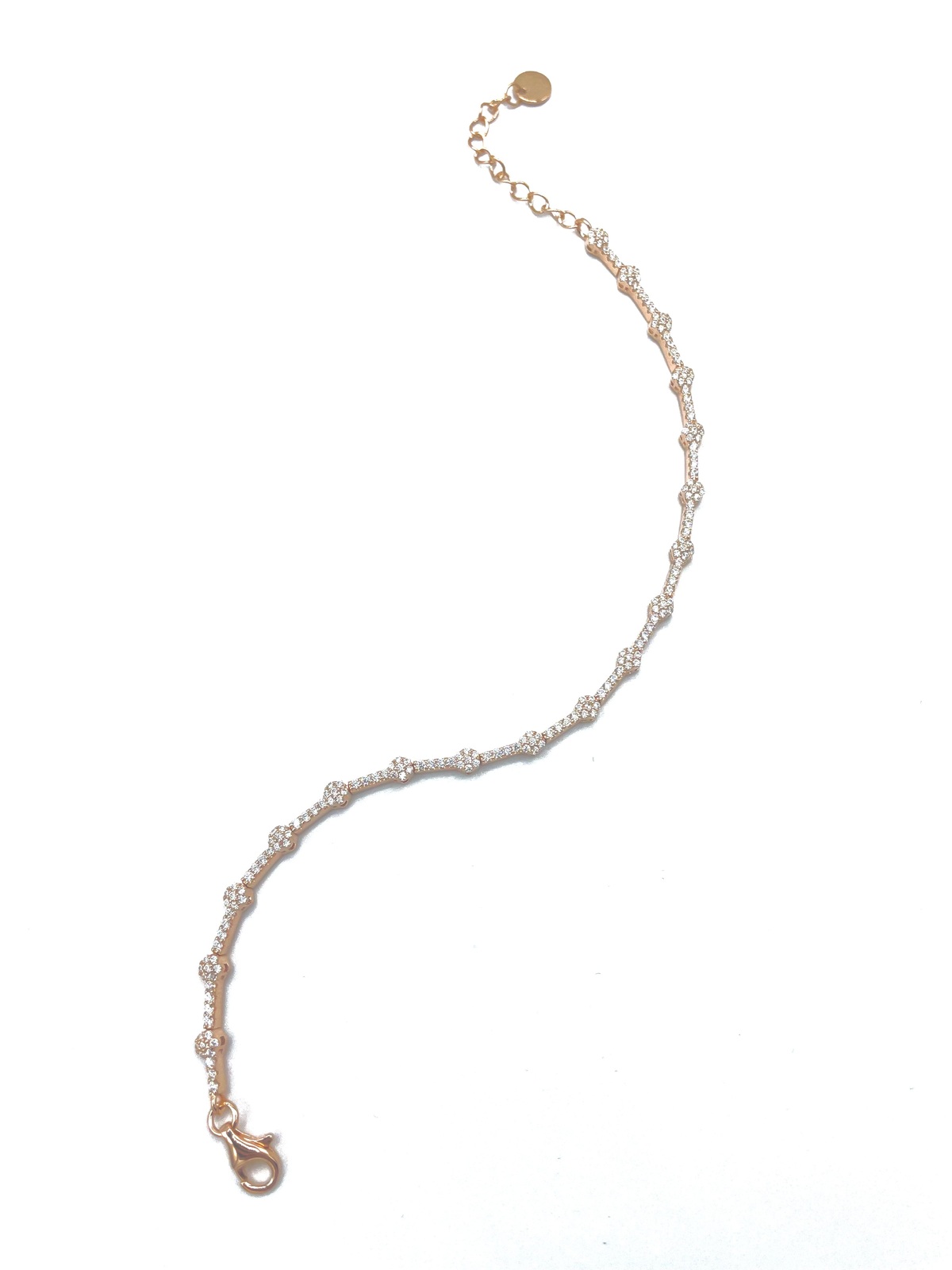 Bracciale tennis in argento tit. 925m. intervallato con fiorellini zirconati.