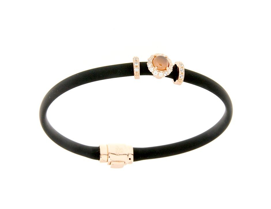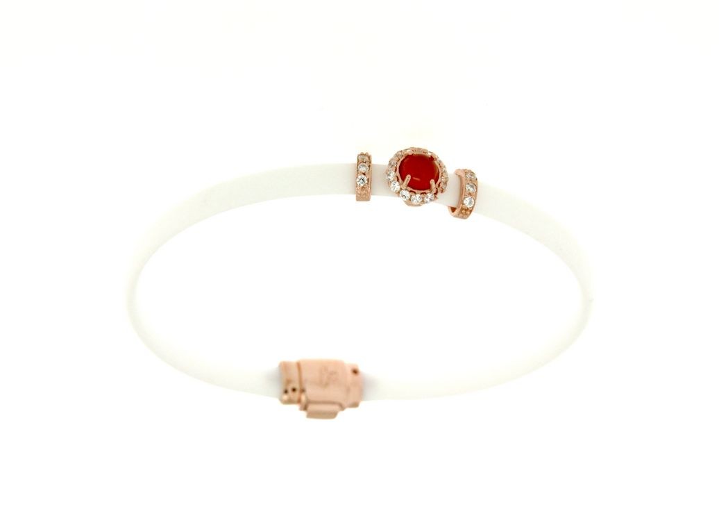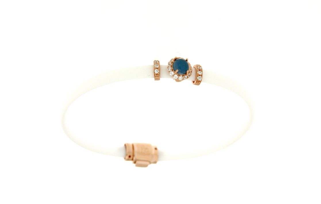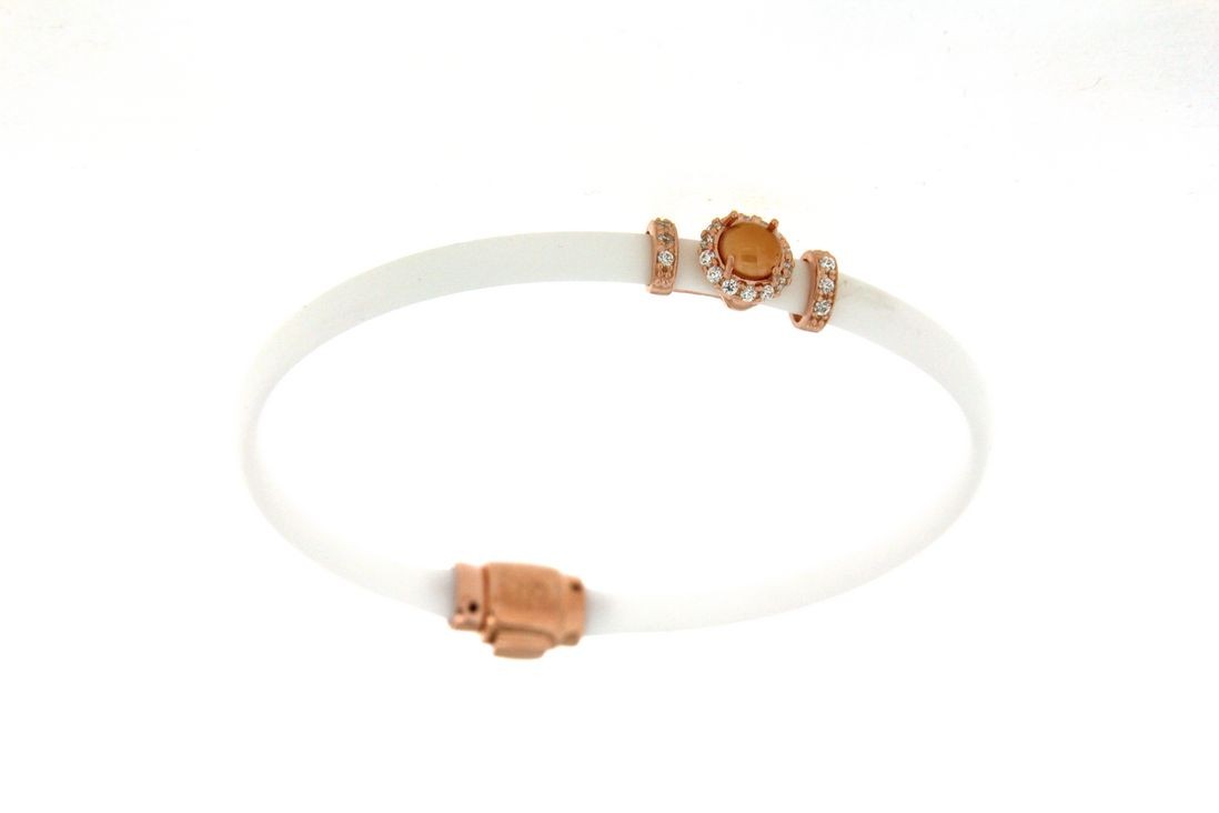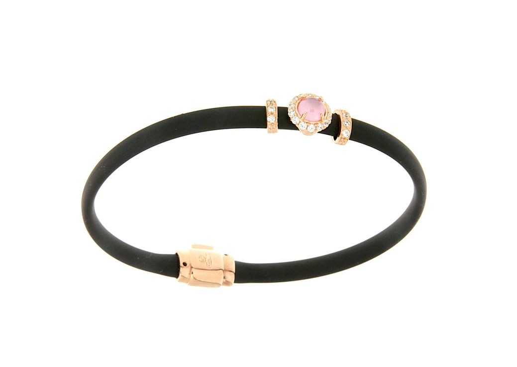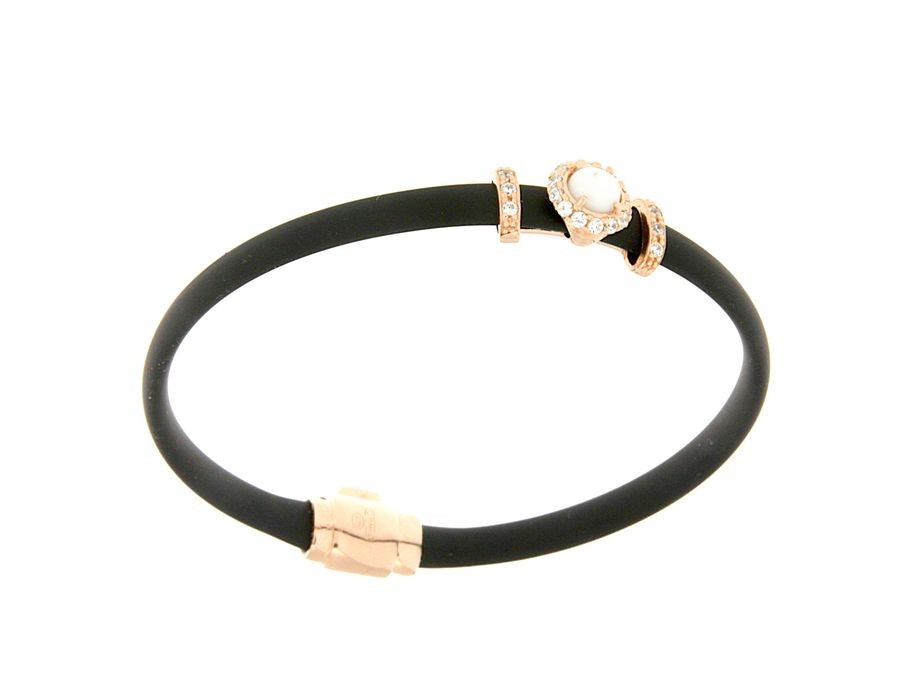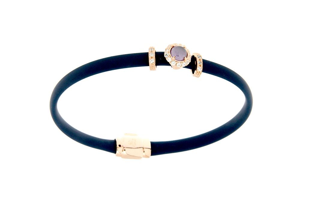 Bracciali in argento tit. 925m. e caucciù con fiorellino contornato da zirconi e pietra colorata centrale.