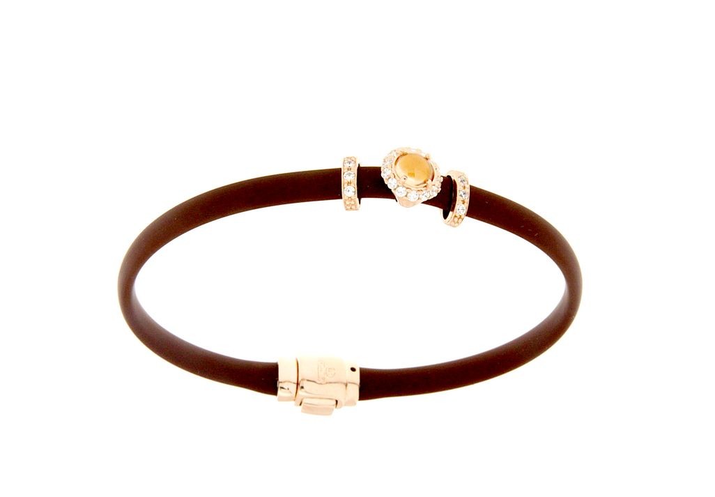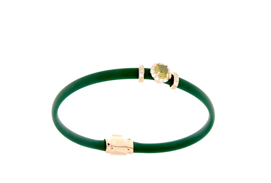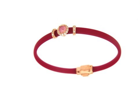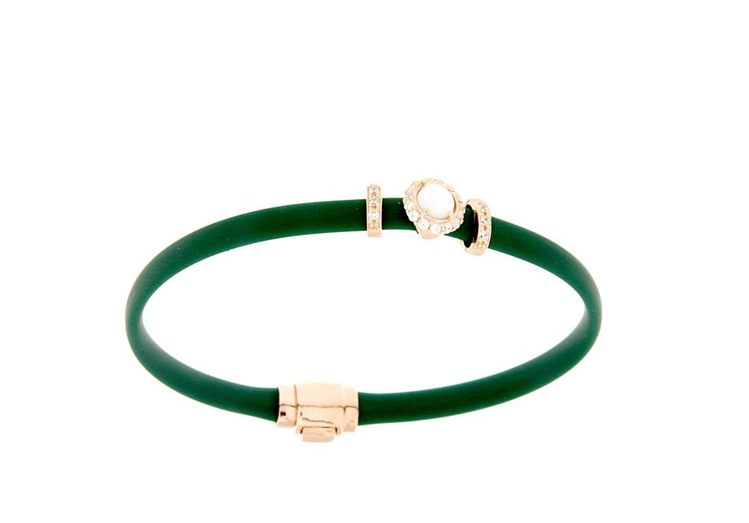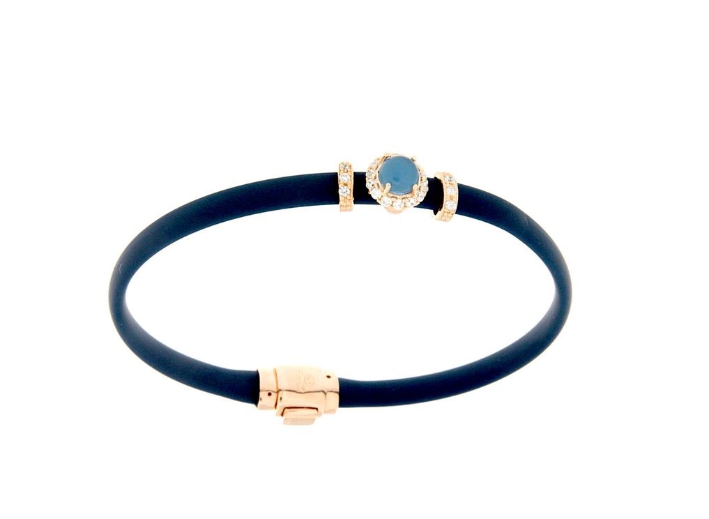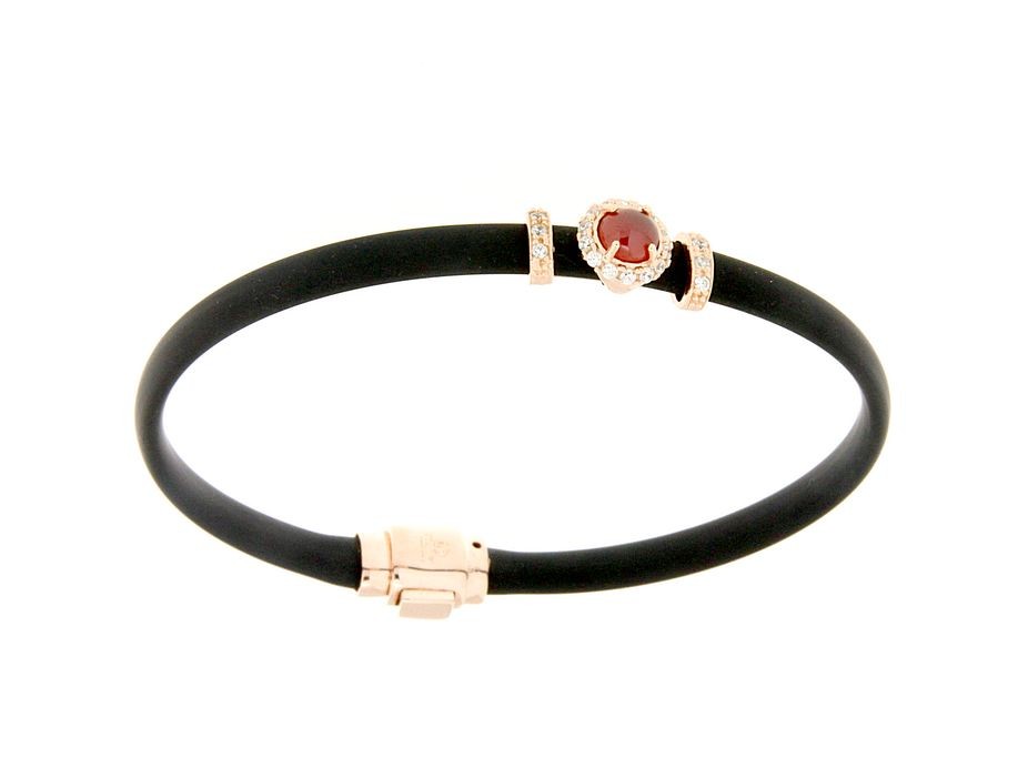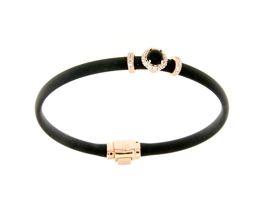 Bracciali in argento tit. 925m. e caucciù con fiorellino contornato da zirconi e pietra colorata centrale.