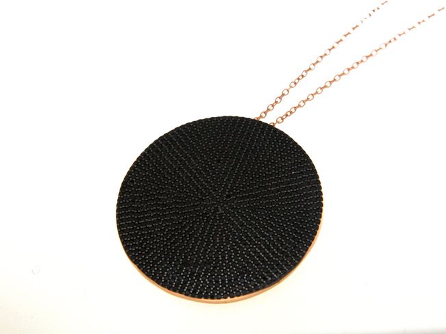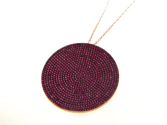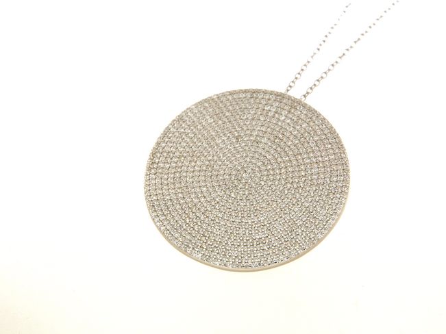 Ciondolo tondo in argento tit. 925m. con zirconi e catena di 80cm.