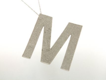 Iniziale "M" in argento tit. 925m. con zirconi e catena 80cm.