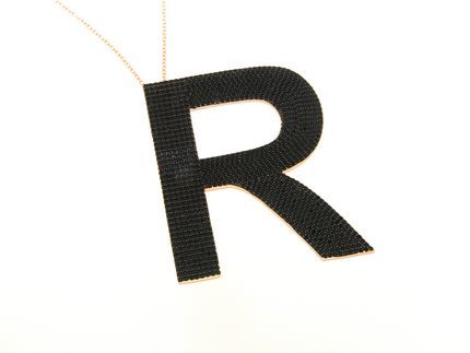 Iniziale "R" con zirconi e catena 80cm.,in argento tit. 925m.
