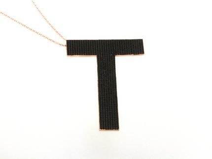 Iniziale "T" con zirconi e catena 80cm., in argento tit. 925m.
