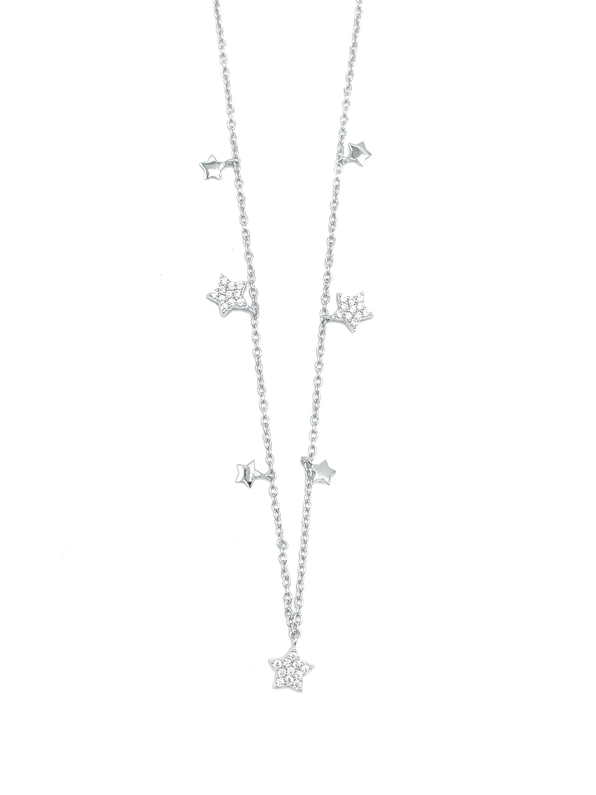 Collana in argento tit. 925m. con stelle pendenti zirconate.