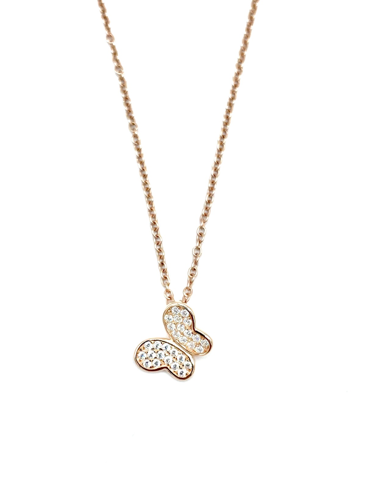 Collana in argento tit. 925m. con farfalla zirconata.