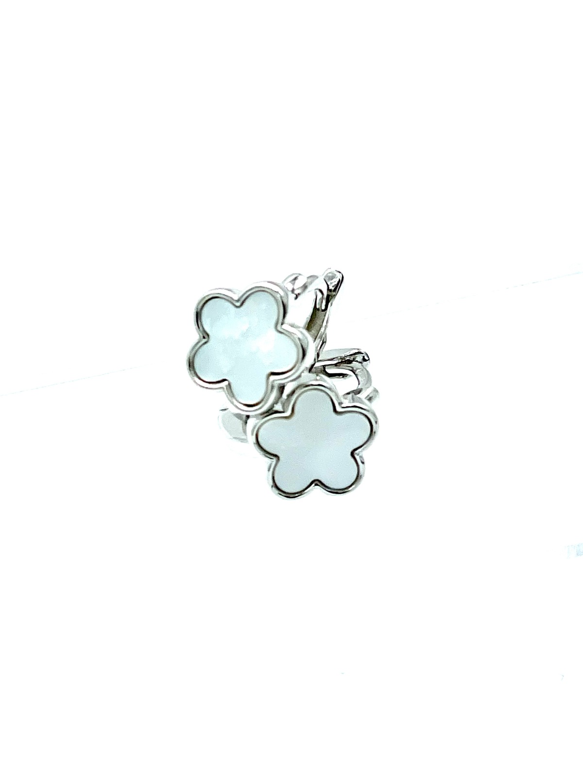 Orecchini cerchio in argento tit. 925m.con fiore di madreperla.
