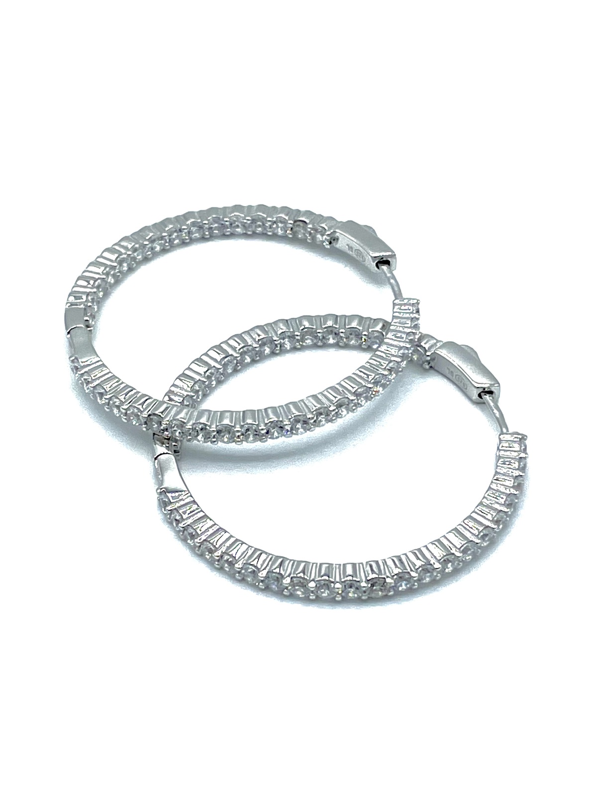 Cerchi,35mm,con zirconi in argento tit. 925m.