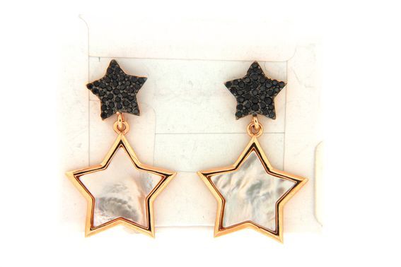 Orecchini stella in argento tit. 925m. con madreperla e zirconi neri.