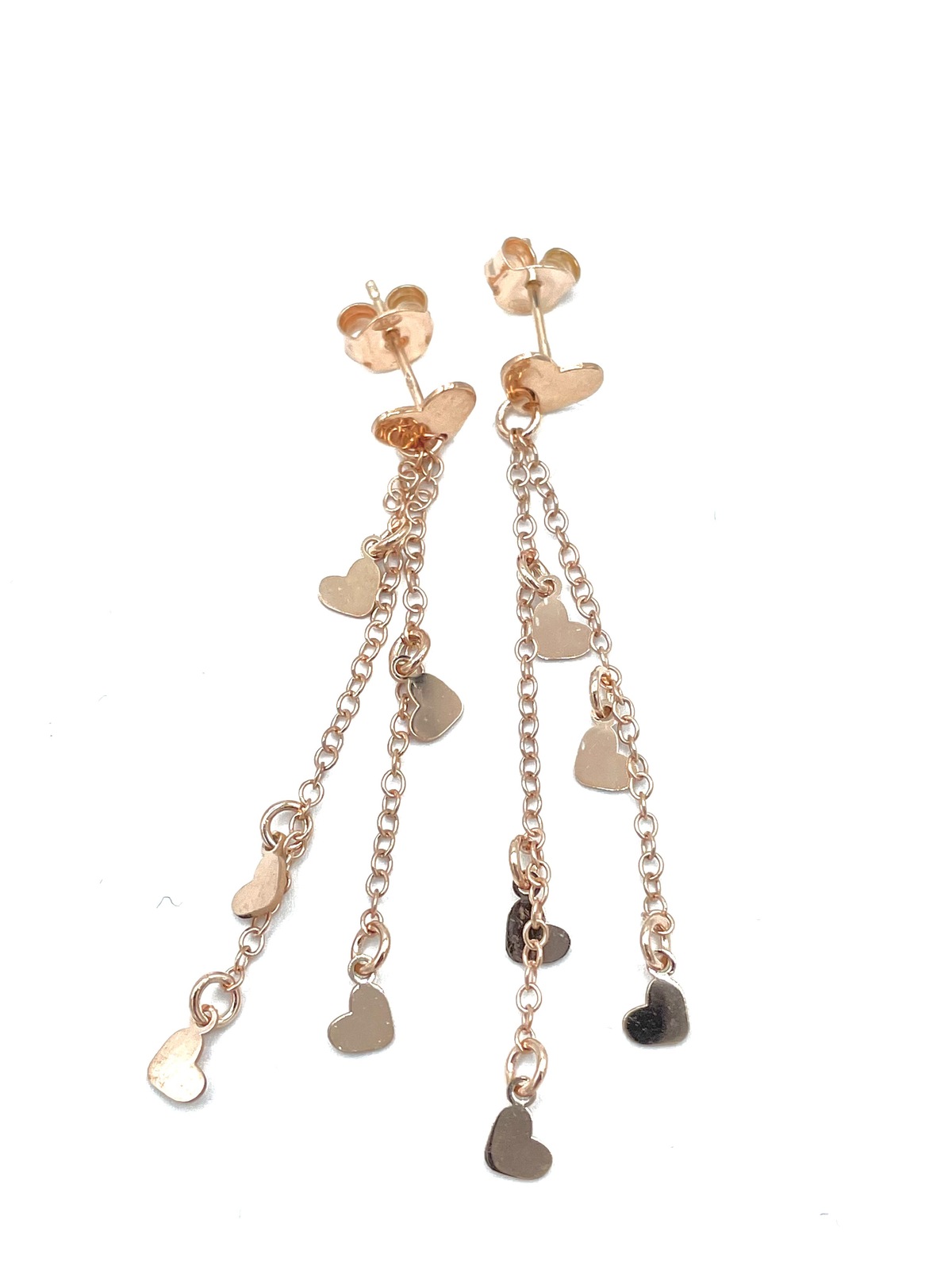 Orecchini in argento tit. 925m. lunghi con cuori pendenti.