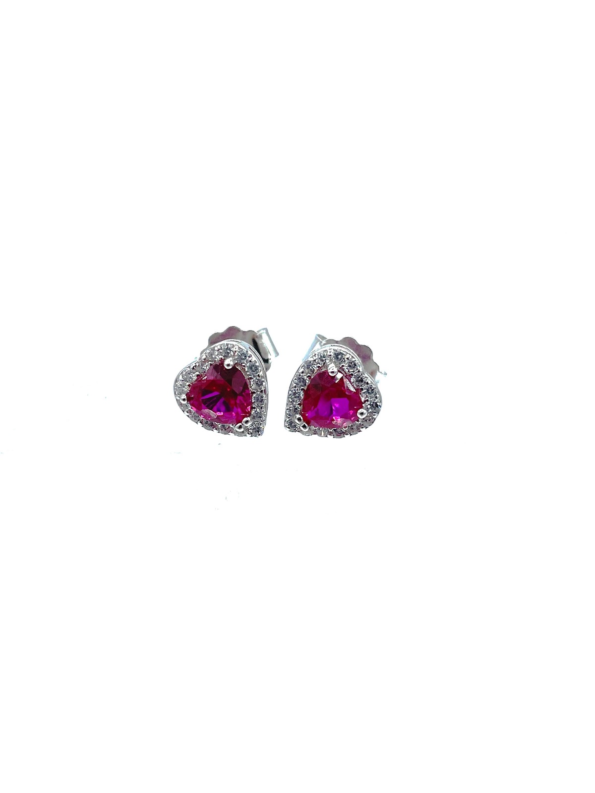 Orecchini in argento tit. 925m. con pietra a forma di cuore contornata da zirconi.
